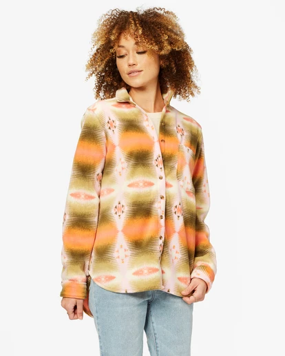 A new take on a mountain classic. Whether you’re hitting the trails or posting up at the lodge, the A/Div Forge Flannel is a go-to. This women’s button-down is made from cozy fleece coated with a durable water repellent treatment to keep you warm, dry, and roaming in comfort.
