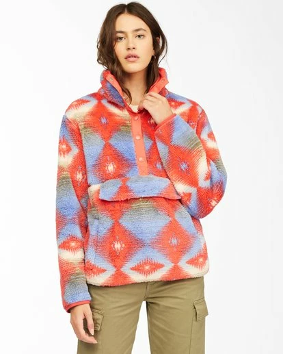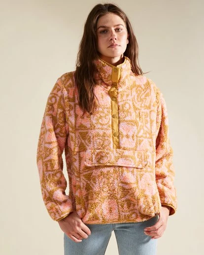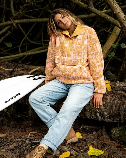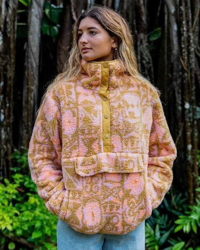 When the day takes you from the waves to the mountain, to the campsite, you need a cozy layer that can stand up to the action. Part of the Adventure Division Collection, the A/Div Switchback Pullover rises to challenge, complete with a standout print on plush fleece fabric. Easy to layer, the women’s pullover is trimmed with contrast ripstop details and a large anorak style pocket at the center front. Zip side pockets keep your essentials secure on the go, and elastic binding at the cuffs and hem keeps the cold out.