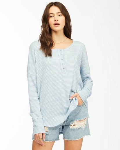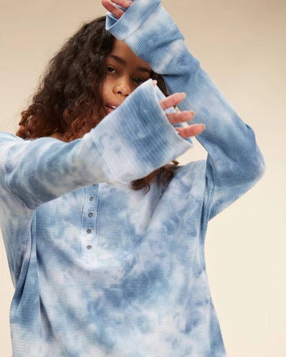 It’s always a good day when you’re wearing the Any Day Long Sleeve T-Shirt. A lounging essential, the women’s tee keeps it mellow with a relaxed fit and thermal knit construction made for cozy moments. A henley neckline is paired with a custom print or soft earthy tones.