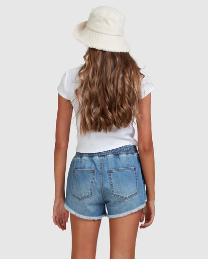 Iconic and essential, denim cut-offs mean that summer has arrived. Go wherever the sun takes you in the Coast Line Denim Shorts, a rigid denim short with a frayed hem, elastic waistband and contrasting drawcord detail. A high-rise style that offers a relaxed fit, these women’s go-to shorts feature front and back pockets to keep your essentials close.