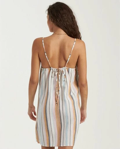 Slip into a daydream state of mind with this easy mini dress. A woven slip dress with minimalist lines, the striped mini features a straight neckline, adjustable spaghetti straps and elastic at the back for the perfect fit.