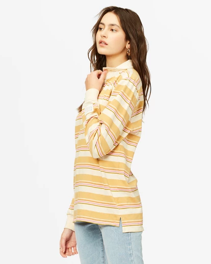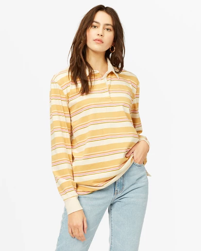 Add a collar but keep it salty. The Double Up Rugby Top gives you stripes for any occasion. This women’s long sleeve offers a relaxed fit with a woven collar and placket with patch detail on the sleeve.
