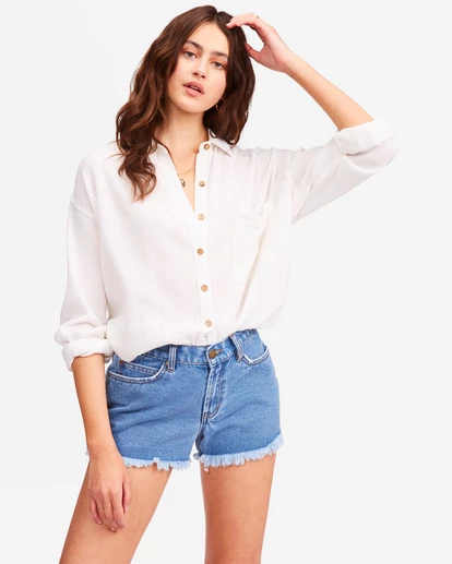 Seriously sanded and washed by the waves, get the ultimate laid-back look with the Drift Away Shorts. These distressed denim shorts are complete with raw edges and a stringy frayed hem. The mid-rise fit delivers a not too tight, not too loose silhouette you’re going to love.