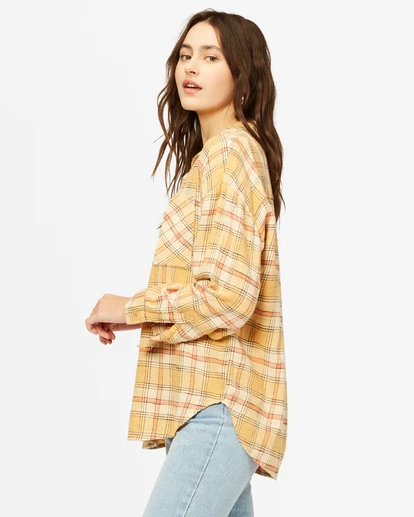 Nothing says chill quite like an oversized flannel. Timeless and iconic, the Easy Breezy Top is made with soft brushed cotton with a patch chest pocket and buttons up the front. Whether you’re fireside or checking the surf, this cozy layer is always down for the ride.