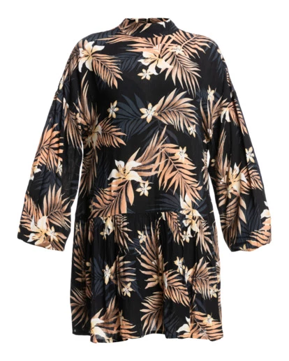 The Happy Mind Mini Dress is sending you warm thoughts and positive vibes. The perfect blend of femininity and flow, this oversized women’s mini dress plays up its girly side with a flouncy skirt, large bouffant sleeves, and a high collar. A fresh tropical print brings the sunshine with you wherever you go.
