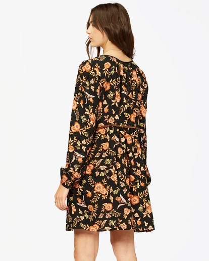 Fulfill your style fantasies with the Hearts Desire Dress. Transitioning from day to night with ease, this versatile shift dress offers a relaxed and boxy fit with long blouson sleeves and a deep V-neck with front ties. The crinkle fabric offers a lightweight texture in a bold floral print.