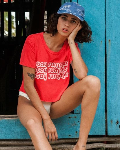 A well-seasoned crop, the Hot Summer celebrates warm days ahead. A chopped and slightly boxy fit classic, the crop tee features a cut-off hemline and short sleeves, topped with original artwork screen printed at the center front.