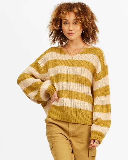 An unstructured sweater for unscheduled days. Look good while you mellow down in the Laid Back Sweater. Taking a relaxed stance on a classic women’s pullover, this soft knit sweater offers an oversized fit with a broad V-neck, dropped shoulders, and extra-wide sleeves with ribbed cuffs.