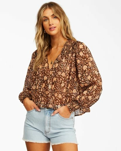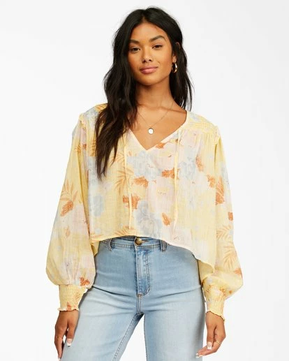 Sunkissed and sea-salted, it’s time to let loose in the Late Night V-Neck Blouse. Flowy and feminine, this women’s blouse offers a relaxed fit with smocking details on the yoke and cuffs, long blouson sleeves and a V-neckline. Made with super-lightweight cotton gauze, the top is perfect for layering over swim or styling up for going out.
