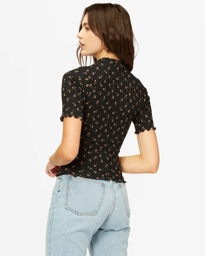 Life is lived in the details, and the Little Things Top is full of pretty ones. Crafted with a lace-like Pointelle ribbed knit fabric, this women’s short sleeve offers a fitted shape with a mock neck and delicate, all-over print. Timeless and versatile, this top is perfect for a night out on the town or causally paired with anything denim.