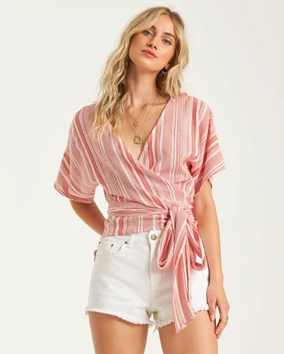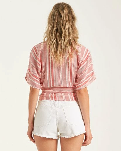 A wrap top with salt-crisped style, the Local Shores keeps the coastal vibes flowing. Easy to toss on and go, the striped wrap top is cut with short dolman sleeves and finished with a thick, flat tie at the side.