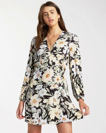 Wrapped in a custom floral print, the Billabong Lotta Love fully embraces the spirit of summer. Lightweight and easy thanks to a crinkle fabric, the women’s wrap dress delivers effortless style, adding a custom floral print and long, full sleeves with elastic bound cuffs.