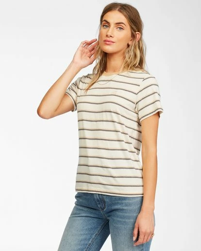 A new tee for the old soul. Sending out retro design with a contrast ringer neck, the women’s striped t-shirt features short sleeves and logo embroidery at the left chest.