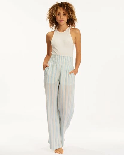 The forecast looks bright in the New Waves 2 Pant. A revival of one of our most popular styles, the women’s beach pant features a timeless stripe on textured gauze fabric. With an easy-to-wear design complete with a comfortable, smocked waistband and wide, flowy leg, these lightweight beach essentials are sure to be a staple of your summertime style.