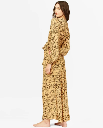 Go ahead and get a little risky. You look so good in the Nine Lives Dress, you can get away with anything. This women’s maxi dress is made from Crinkle fabric with an all-over feline print. The wrap design makes it fully adjustable to your body shape, and long blouson sleeves add stunning style.