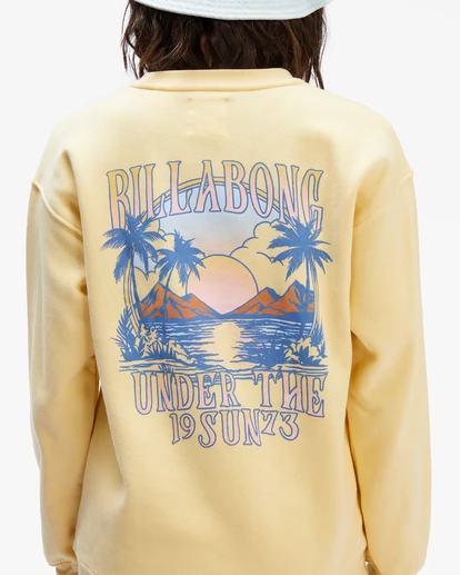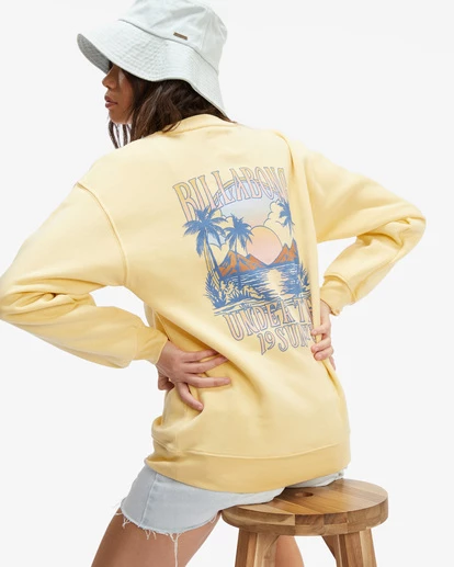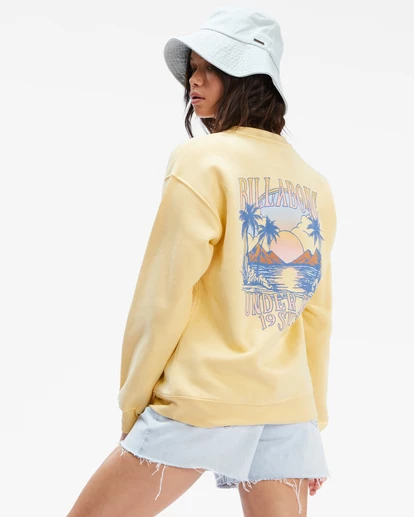 Relax among the palms in the Ocean Scenes Crewneck Sweatshirt. A sun kissed essential for laidback days, this women’s pullover sweatshirt offers a regular fit with a soft and lightweight, perfect for cool summer nights. This sunset sidekick is made with a premium cotton blend featuring screen-printing on the back and front left chest. A piece-dyed color wash gives it a vintage look and feel.