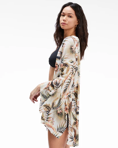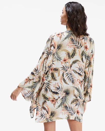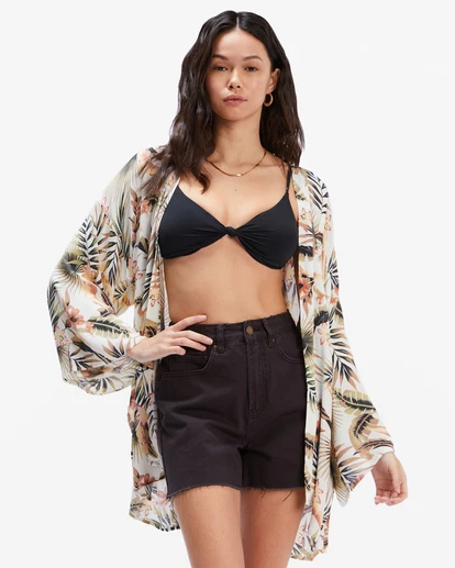 The Parisian Nights Kimono Top is the perfect statement piece to layer over your chic basics. It’s relaxed shape and open front style add easy movement and flow while a stand out print delivers a warm, mellow vibe of the tropics. With lightweight crinkle fabric you never have to worry about wrinkles, so this beauty is great piece to pack for your jet-setting adventures both near or far.