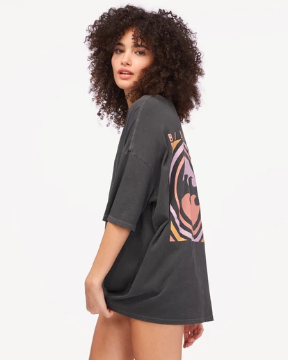 Take charge of the day and make it great in the Run This T-Shirt. An oversized graphic tee that sits at the head of the pack, this women’s true boy style t-shirt is made with cotton jersey in a mid-weight thickness reminiscent of a vintage tee from the 80s. Piece dyed to create a naturally well-worn look and feel, this year-round staple features a statement graphic printed on the back and front chest.