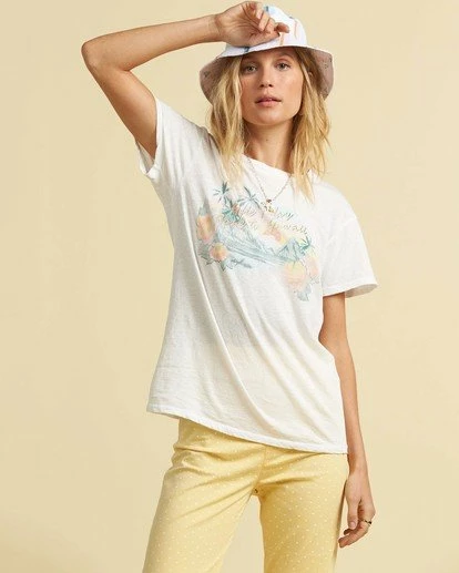 Here today and gone surfing, the Billabong Not A Tourist Tee brings revives vintage graphics and recycled cotton jersey. Part of the Billabong x Salty Blonde Collection, the women’s short sleeve tee is cut with a relaxed fit.