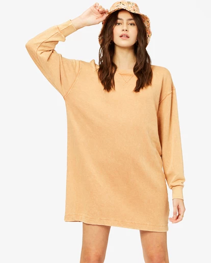 Comfort and style go hand-in-hand with the Sandy Dream Sweatshirt Dress. Made in lightweight French Terry fabric, this women’s dress is soft, moisture-wicking, and quick-drying- the perfect piece to toss on after a surf. The fit is relaxed throughout, with ribbed bands at the wrists and neck. A premium mineral wash gives this everyday essential a naturally well-worn look and feel.