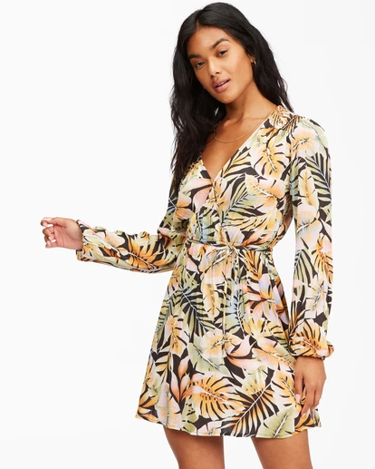 Ahh, Spring! The water is warming, flowers are blooming— but our favorite part? It’s pretty dress season! And the Spring Romance Dress shows up for it in style. This women’s mini dress from our Under The Palms Collection features a playful print on premium crinkle fabric that gives it a subtle texture and a silky-soft feel. Plus, it’s loaded with dreamy details including a V-neck, flowy blouson sleeves, and a smocked panel at the front. And as for the fit? It’s a true wrap dress so you can count on this little mini to not only feel good, but look good. Every time.
