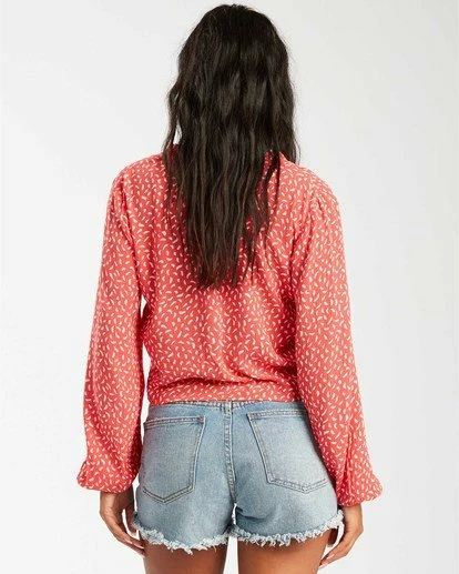 Living off love, sun and wanderlust, the Starry Nights brings together boho and romantic lines. A long sleeve printed top for day or night stands out with a deep V neckline and shirred design at the button down front.