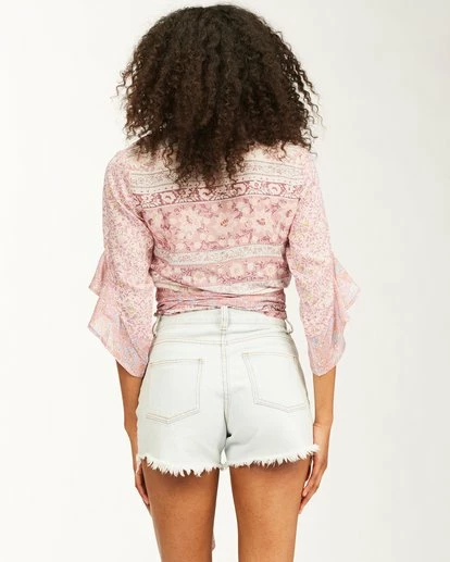A free spirited top for the girl who doesn’t hold back, but will stop for sunsets. A bohemian print wrap top, the Summer Glow showcases flowy lines with a half length flounce sleeve and adjustable tie at the hem.