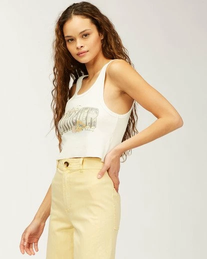Stay cool in this easy wear summertime singlet. This tank continues a laid-back look with exclusive brand artworks printed at the chest and a ribbed fabric that gives a well-worn look and feel. Finished with a raw hem, and ribbed neck and arm edges.