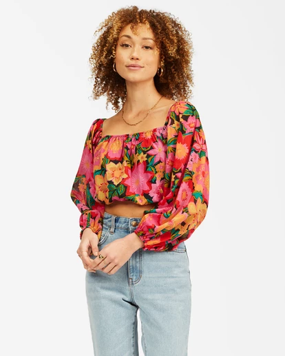 Just like you- the Sun Daze Crop Top thrives off water and sunlight. This playful women’s crop top combines a straight neckline with long, off-the-shoulder sleeves to deliver a dreamy, laid-back vibe perfect for any occasion. Premium cotton slub fabric gives it a soft, subtle texture, and the bold floral print shows off your signature style.