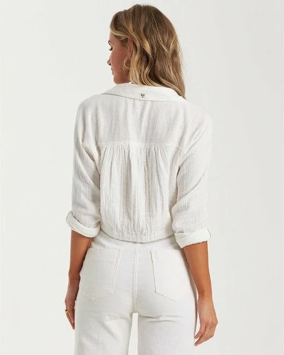 A balance of salt-crisped and sand-worn, the Sunset Sessions long sleeve button down is made from lightweight chenille stripe fabric. An out-of-office kinda button-down, the long sleeve shirt finds an off-hours vibe with a tie at the center front hem and elastic at the back waist for a waist-skimming length.