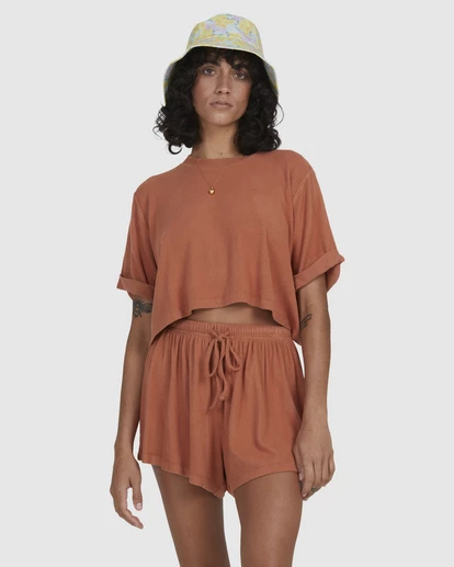 Your go-to while you wait for the tide to change— the Sunup Top keeps it mellow from sunrise to sunset. Laid-back and easy to wear, this lounging essential is designed with a relaxed fit that features an accentuated neckband. The top-quality ribbed knit fabric feels ultra-soft and cozy. Pair this must-have women’s top with the Sunup Short for the ultimate lounging set. But, act fast! These beauties won’t be around for long. We’ve revived this favorite style for a limited time only!
