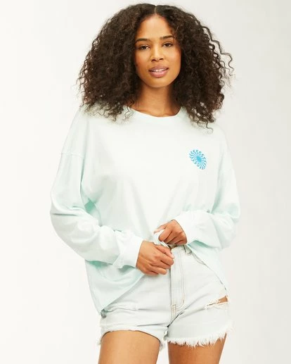 A long sleeve that doesn’t overcomplicate things, the Billabong Surfadelic women’s t-shirt keeps things soft and simple. An oversized take on a surf tee, the women’s graphic t-shirt features a palm tree print at the left chest. A loose knit jersey and garment wash combine for a super soft feel.