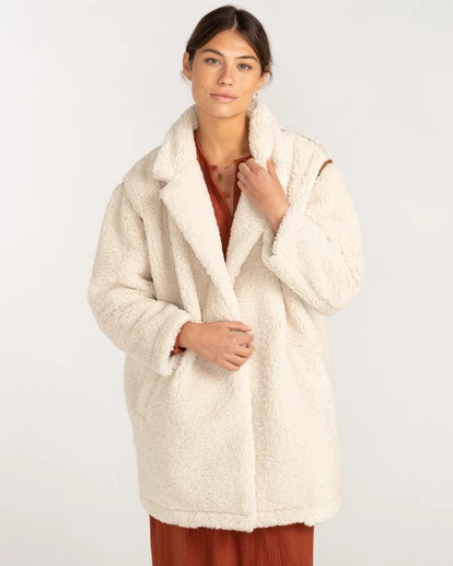 A new faux worthy of statement jacket vibes. The Sweet Escape is a gorgeous faux shearling fur coat that stands out with contrast suede binding that runs along the shoulder and armholes. A key addition to your signature style, this women’s jacket offers a relaxed fit with well-tailored finishes including a collared neckline, dropped shoulders and welt pockets.