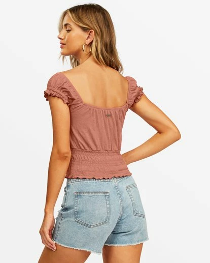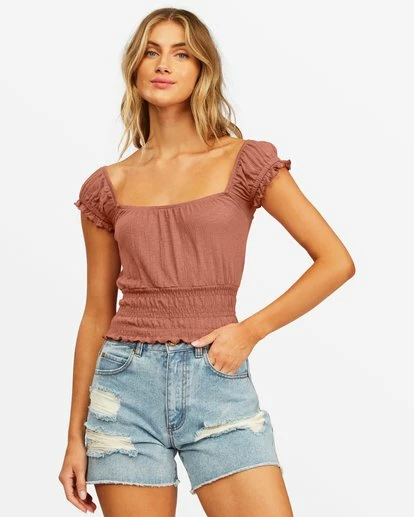 Elevating your tee’s sweetness and softness factors, this custom essential is designed with an open neckline and smocking at the hem and sleeves. A staple top with a feminine form, the Sweet Sands is finished with elastic at the neckline, adding extra shape to the knit tee.