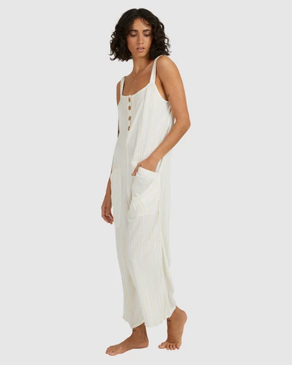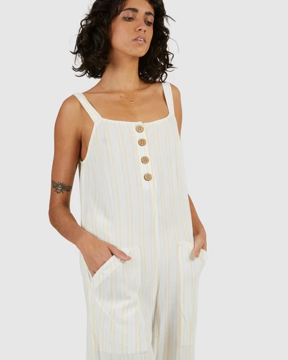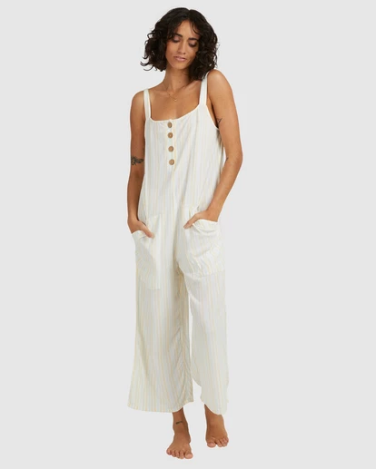 Meet the Tropic Haze Jumpsuit, your new summer uniform. It’s striped, it’s relaxed, and it’s made with lightweight crinkle fabric so you can run free without the worry of wrinkles. This women’s jumpsuit features front buttons and patch pockets. Summer essentials covered, check and check.