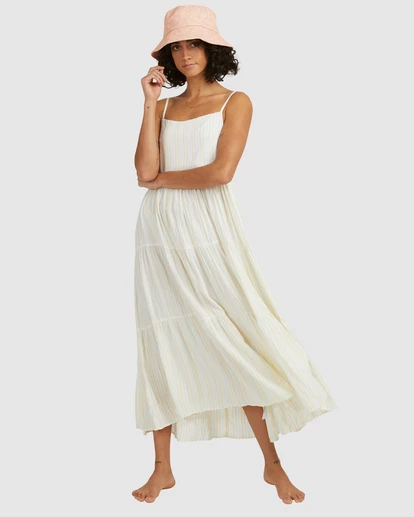 Striped and stunning, the Tropic Haze Maxi Dress is the perfect sidekick for sun-soaked days. Offering a square neckline and a regular fit through the top, this laid-back beauty flows with soft gathered tiers throughout the skirt. Made with soft crinkle fabric that’s perfect for travel and exotic wanderings, this women’s maxi dress features a keyhole at the back and adjustable straps.