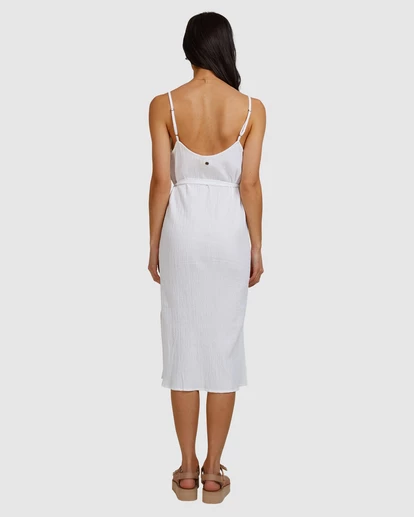 Simple and timeless, the Tropic Sands Midi Dress is a go-to for those looking for easy elegance with a beach vibe. Perfect for cocktail hour or pool party hangs, this women’s cotton slub dress hits just below the knee, featuring standout details including side seam splits and a self-tie belt to show off your shape.