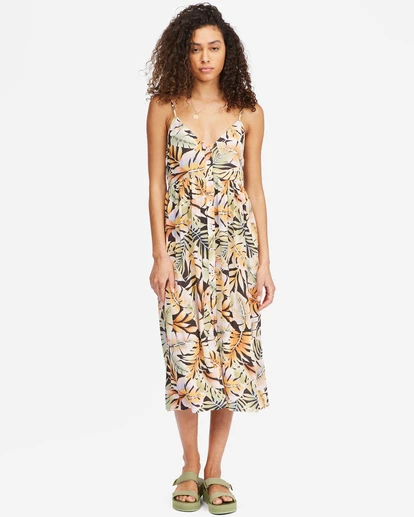 Sunkissed and essential— nothing beats the lightweight ease of a slip dress on a hot summer day. Whether you’re chilling around town or setting off for a holiday in the sun, the Venice Babe mid-length slip dress from our Under The Palms Collection is your go-to for all-day comfort and effortless style. Made with silky-soft crinkle fabric, it’s detailed with a V-neck, front buttons, and spaghetti straps. But the real attention-grabber here is its playful springtime print. And that’s what will have you reaching for this women’s dress again and again.