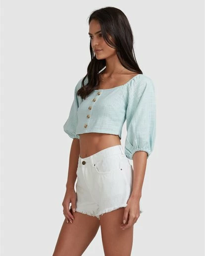 A top that flirts with your lust for life, The White Sand Top is made from 100% cotton gauze. Featuring puff sleeves, back shirring and bodice darts for a great fit.