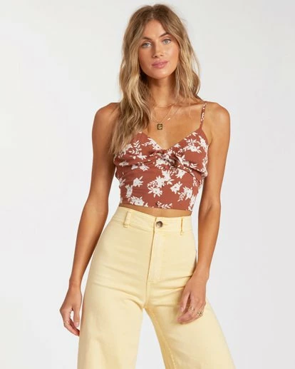 Sun-baked blooms take center stage in this easy summer cami. A women’s top with an allover sun-tanned floral print, the Billabong Wild Run finds plenty of feminine design in a micro tank. Made from crinkle fabric for a lightweight feel with a subtle texture, the women’s tank is fitted with a smocked back panel and finished with ties at the neckline and faux buttons.