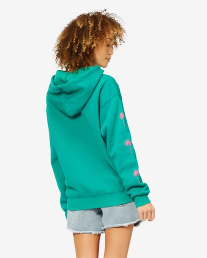 Feel the sun on your face and the wind at your back in the Windy Palms Hoodie. Your companion for day trips, surf checks, and everything in between, this women’s hoodie offers a regular fit with a fleece-like feel perfect for year-round wear. Screen-printing on the sleeves and left chest add sun-soaked style, and the piece-dyed color wash gives it a lived-in look and feel.