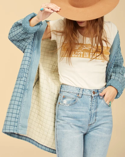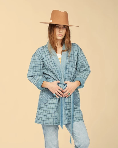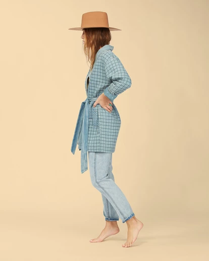 Polka dot patchwork perfection and classic indigo come together beautifully in the Down To Earth Jacket – inspired by vintage quilts of the American West. Fit for life beyond the shoreline, this open-front women’s jacket is warm and cozy while keeping your style on point. It’s quilted and comes with a removable belt that pulls it all together. Made with Eco-Conscious Cotton denim, this beauty helps keep Mother Nature wild and free. Our Eco-Conscious Cotton is farmed and produced in a way that aims to reduce its environmental impact and improve working conditions.