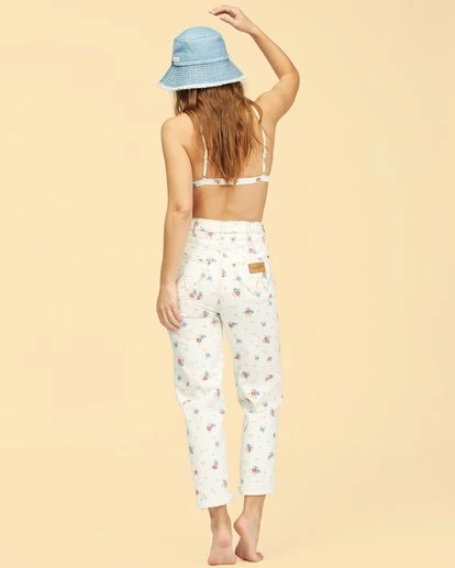Good days start with good denim, and you can’t go wrong with the She’s Cheeky Pant. Serving up a hip-hugging fit that can’t be beat, these white denim beauties take a timeless 5-pocket design and go full flower power with a sweet floral print. They’re high-waisted, button up the front, and feature the iconic Wrangler stitching on the back pockets. To top it all off, these cheeky wonders are made with Eco-Conscious Cotton denim. Our Eco-Conscious cotton is farmed and produced in a way that aims to reduce its environmental impact and improve working conditions.
